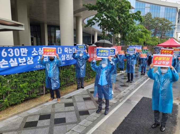 범국민연대는 "국회가 손실보상 소급적용 법제화를 추진했음에도 기재부는 줄곧 반대 입장을 표시했다. 여야 3당이 손실보상 소급적용을 합의했지만 결국 허무하게 무산됐다"며 "이를 규탄하기 위해 모였다"고 밝혔다.