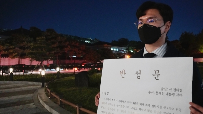 이어 신전대협은 “그러나 착각이었다. 자신에 대한 비판은 댓글이든, 대자보든, 전단지든 모두 탄압했다”면서 “사실을 말해서, 다른 의견을 가져서, 표현의 자유를 원해서, 공정한 기회를 요구해서, 대통령 각하의 심기를 거슬러 대단히 죄송하다”며 반성문을 마무리했다.