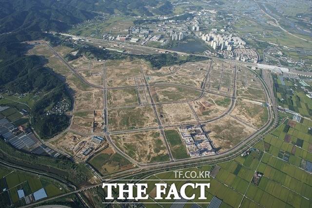 청주시 오송바이오폴리스 항공사진. 청주시 오송지역 초미세먼지(PM-2.5) 성분 대부분이 화석연료 연소 등에 따른 2차 생성물이라는 충북보건환경연구원의 연구결과가 나왔다. / 충북도 제공 |