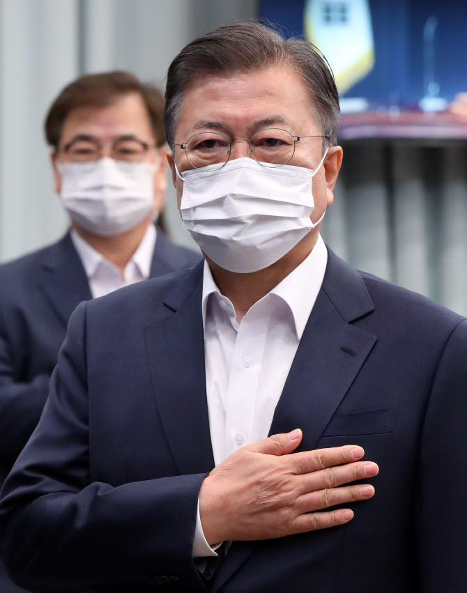 문재인 대통령이 11일 오전 청와대 여민관에서 열린 제20회 국무회의에서 국민의례를 하고 있다.(사진=연합뉴스) |