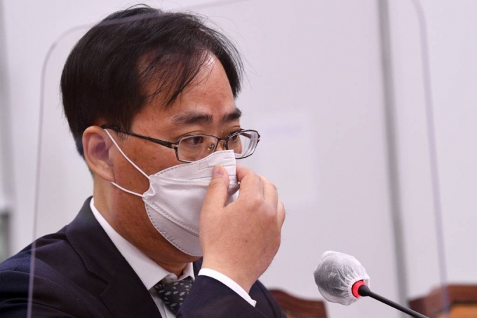 [서울=뉴시스김진아 기자 = 박준영 해양수산부장관 후보자가 4일 오전 서울 여의도 국회에서 열린 농림축산식품해양수산위원회의 해양수산부장관 후보자 인사청문회에 출석해 마스크를 고쳐쓰고 있다. (공동취재사진) 2021.05.04. photo@newsis.com |