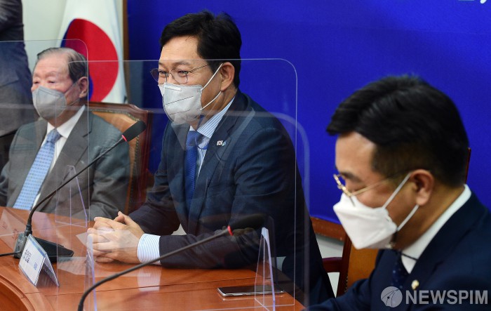 [서울=뉴스핌] 최상수 기자 = 송영길 더불어민주당 대표가 13일 국회에서 열린 상임고문단 간담회에서 인사말을 하고 있다. 2021.05.13 kilroy023@newspim.com |