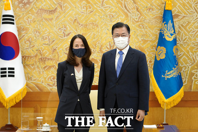 [더팩트ㅣ청와대=허주열 기자] 문재인 대통령이 14일 방한 중인 에브릴 헤인스 미국 국가정보국(DNI) 국장을 접견했다. 이 자리에선 한·미 양국 간 현안 및 한반도 정세 등에 대한 폭넓은 논의가 이뤄진 것으로 알려졌다.