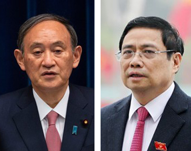 스가 요시히데(菅義偉, 왼쪽) 일본 총리와 팜 민 찐 베트남 총리 [AFP·AP=연합뉴스 자료사진] |