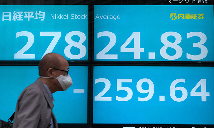 지난 17일(현지시간) 도쿄 증권거래소 앞을 한 남성이 지나가고 있다. AFP연합뉴스 |