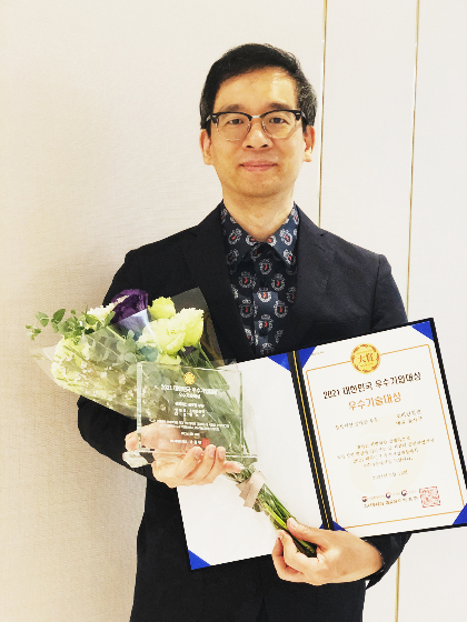 윤석구 소버린월렛 대표가 머니투데이 주최의 '2021 제7회 대한민국 우수기업대상'에서 '블록체인 플랫폼' 부문 '우수기술대상'을 수상한 뒤 기념 촬영 중이다.