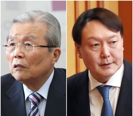 김종인(왼쪽) 전 국민의힘 비상대책위원장과 윤석열 전 검찰총장. 중앙포토 |