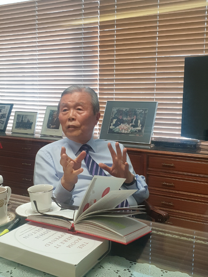 김종인 전 국민의힘 비상대책위원장이 9일 서울 광화문 개인 사무실에서 연합뉴스와 인터뷰하고 있다./[사진 출처 = 연합 뉴스] |