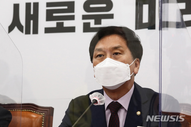 [서울=뉴시스]전진환 기자 = 김기현 국민의힘 대표 권한대행 겸 원내대표가 24일 서울 여의도 국회에서 열린 비상대책위원회 회의에서 모두발언 하고 있다. (공동취재사진) 2021.05.24. photo@newsis.com |