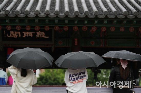 비가 내린 17일 서울 중구 남산골한옥마을에서 시민들이 우산을 쓴 채 이동하고 있다. /문호남 기자 munonam@ |