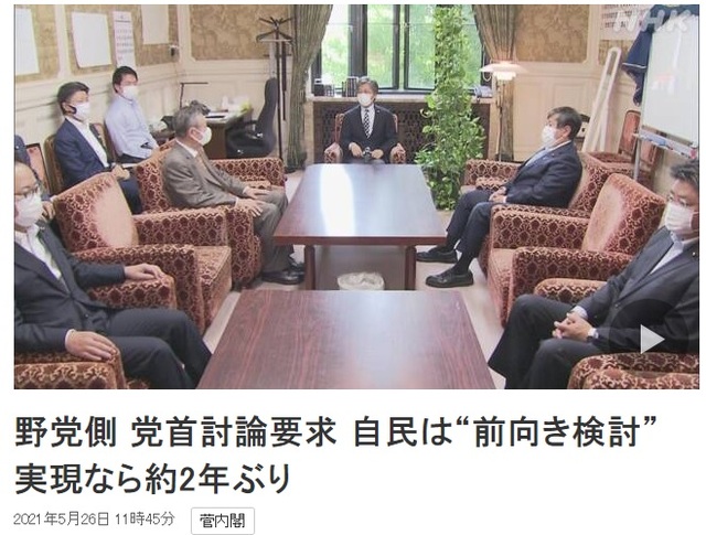 이번 당수토론은 도쿄올림픽 개최 가부와 정부의 코로나19 대책 논의를 위해 야당 측이 개최를 제안했다.