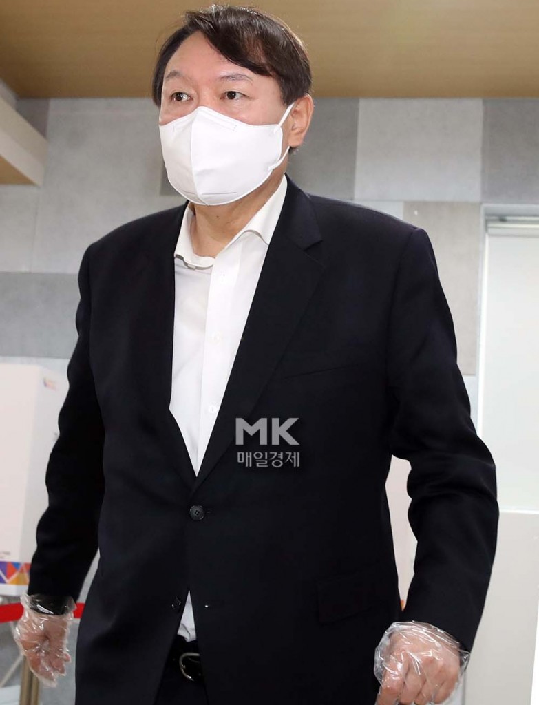 윤석열 전 검찰총장이 4·7 재·보궐선거 사전투표 첫날인 2일 오전 서울 서대문구 남가좌1동 주민센터에 마련된 사전투표소에서 투표를 하고 있다. 2021.4.2 [매경 DB] |