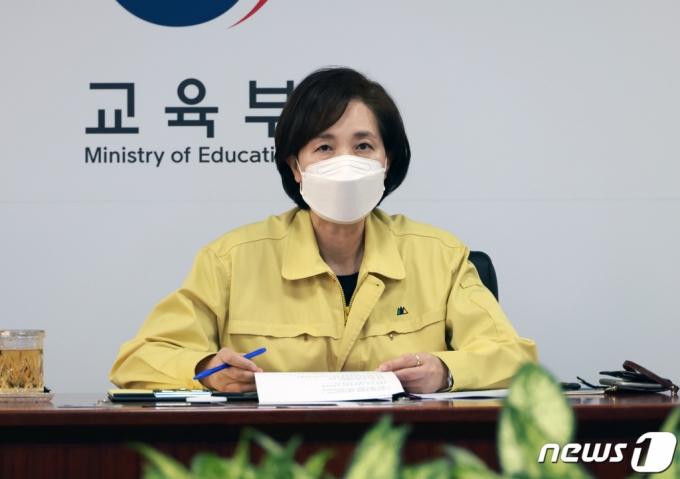(서울=뉴스1) = 유은혜 사회부총리 겸 교육부 장관이 26일 세종시 정부세종청사에서 열린 '전국시도교육감 영상회의'에서 발언하고 있다. (교육부 제공) /사진=뉴스1 |