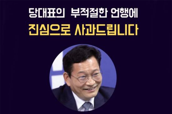 송 대표는 이날 국회 '국민소통 민심경청 프로젝트 대국민 보고회'를 열고 조 전 장관 자녀 입시 비리 문제에 대해 사과했다. 그는 "국민과 청년들의 상처받은 마음을 헤아리지 못한 점을 다시 한번 사과드린다"며 "조국 전 장관의 법률적 문제와는 별개로 자녀 입시 관련 문제는 우리 스스로도 돌이켜보고 반성해야 할 문제"라고 밝혔다.
