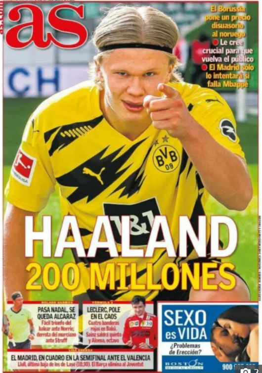 스페인 '아스'는 7일(한국시간) "보르시아 도르트문트는 이번 시즌 엘링 홀란드의 판매는 없다고 결정했다"면서 "그들은 다른 구단에게 이번 시즌 데려가려고 하면 2억 유로(약 2704억 원)을 달라고 요구했다"고 보도했다.