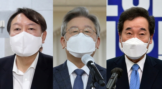 왼쪽부터 윤석열 전 검찰총장, 이재명 경기지사, 이낙연 전 더불어민주당 대표. 〈사진=연합뉴스〉 |