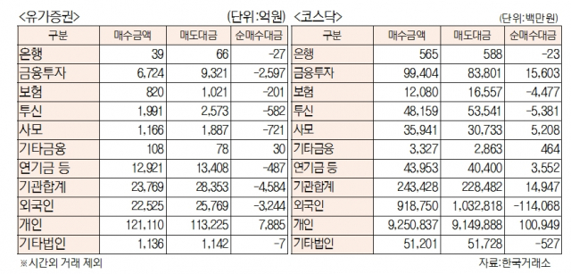 [표]유가증권 코스닥 투자주체별 매매동향(6월 9일)