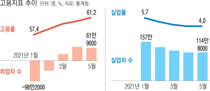 5월 취업자 61만여명 증가 ‘석 달째 고용 개선’에도 불균형 여전