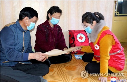 북한 조선적십자회 자원봉사자들이 지난해 3월 지역주민을 대상으로 방역·위생 선전활동을 벌이고 있다. [선전매체 '조선의 오늘' 홈페이지 캡처. 재판매 및 DB 금지] |