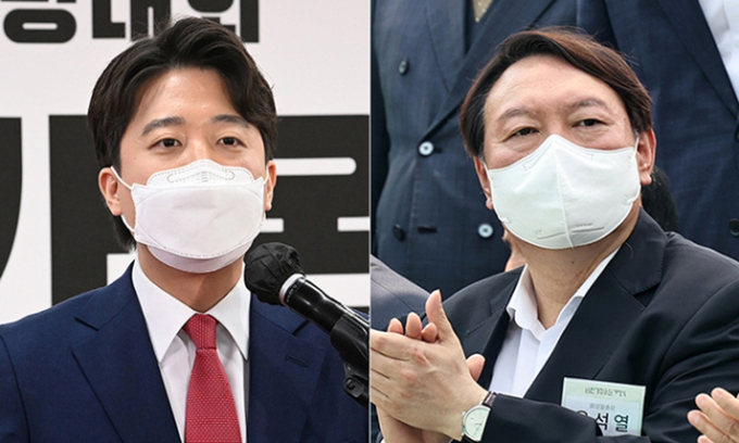 야권의 유력 대권주자인 손꼽히는 윤석열(사진 오른쪽) 전 검찰총장이 국민의힘 이준석(〃 왼쪽) 신임 대표에게 당선 축하 문자 메시지를 보낸 것으로 확인됐다.