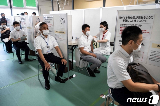 일본 도쿄에서 의료 종사자들이 코로나19 모더나 백신을 접종받고 있다. /AFP=뉴스1 |