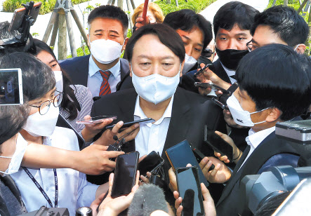 윤석열 전 검찰총장이 9일 오후 열린 서울 남산예장공원 개장식에 참석하기 앞서 취재진의 질문에 답하고 있다. [연합] |