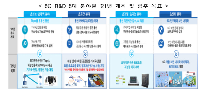 관련해 올해는 6G 기술개발의 첫 해인만큼 각 6G 핵심분야별 기술요구 사항을 정립하고 요소 기술을 설계하는 등 원천기술 확보를 위한 기틀을 닦고 핵심 장비 및 부품 국산화를 위한 기반을 마련한다.