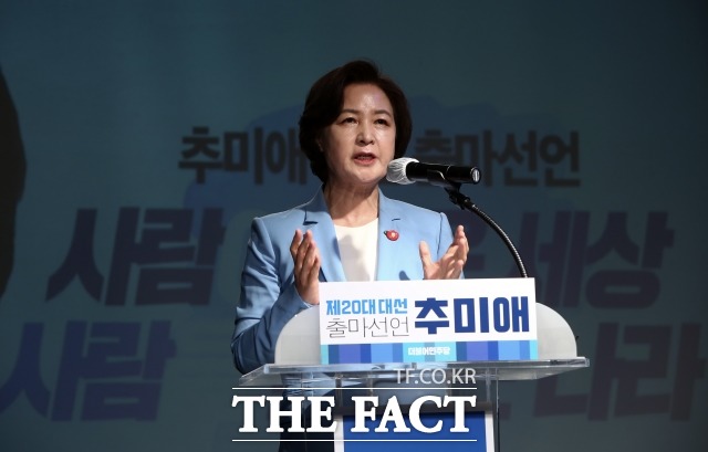 앞서 추 전 장관은 "사람이 높은 세상을 만들기 위해 사람을 높이는 나라를 만들겠다. 기득권 세력의 선택적 정의와 가짜 공정, 초법적 행위에 맞서 정의와 공정, 법치의 나라를 만들겠다"며 대선 출마를 선언했다.