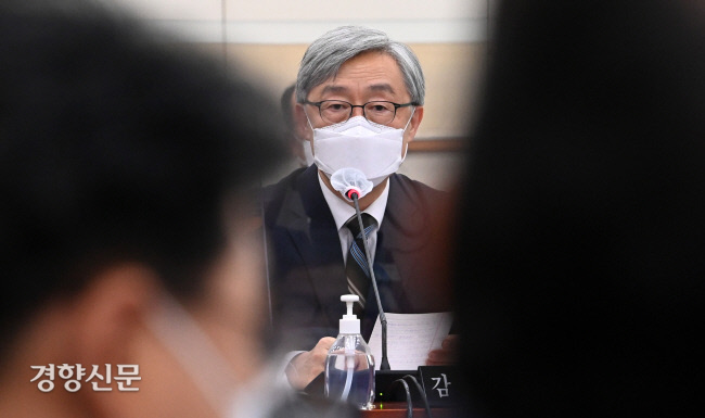 지난 18일 국회에서 열린 법제사법위원회에서 최재형 감사원장이 의원들의 질의에 답하고 있다./국회사진기자단 |