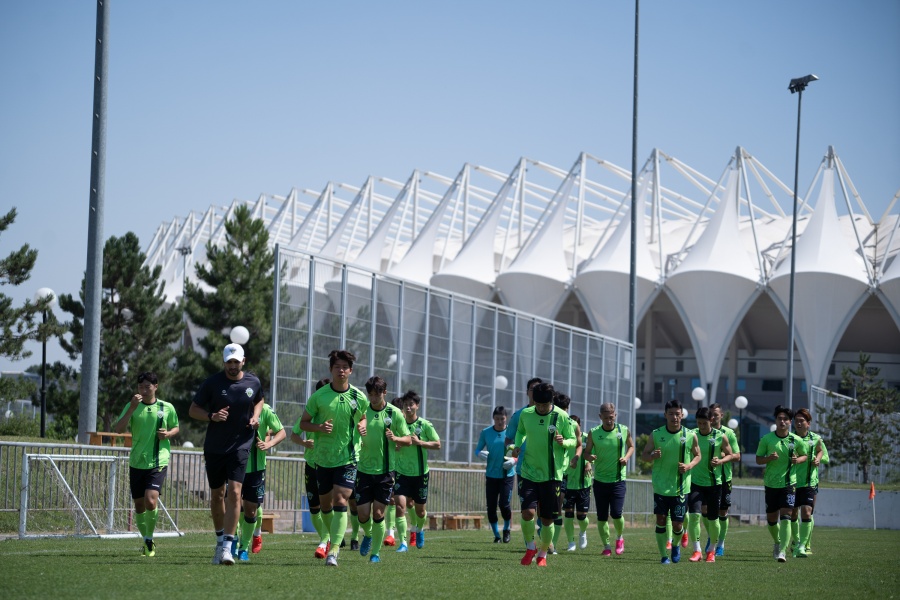 경기를 치르는 우즈베키스탄 타슈켄트는 마른 더위가 애를 먹이고 있습니다.