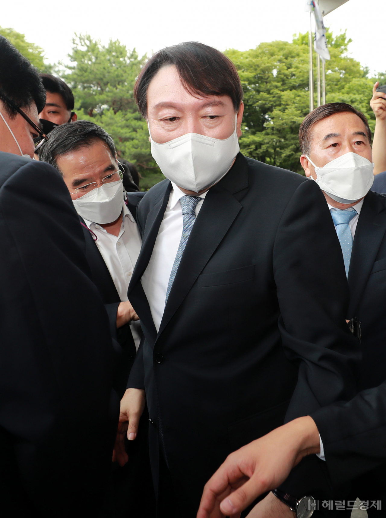 [헤럴드경제=이상섭 기자] 윤석열 전 검찰총장이 29일 오후 서울 서초구 매헌 윤봉길 의사 기념관에서 대선출마 선언을 하기 위해 입장하고 있다.
