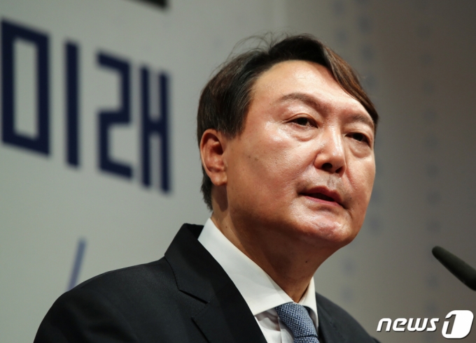 윤석열 전 검찰총장이 29일 오후 서울 서초구 매헌 윤봉길 의사 기념관에서 대선 출마 선언을 하고 있다. /사진=뉴스1 |