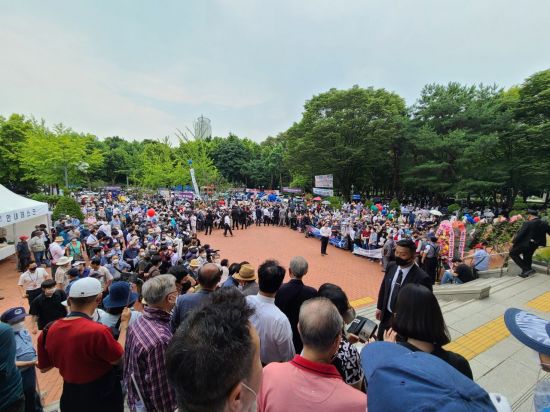 29일 윤석열 전 검찰총장의 정치 참여 선언식이 열린 서울 서초구 매헌 윤봉길 의사 기념관 앞은 전국 각지에서 모인 윤석열 전 총장 지지자들로 북적였다. / 사진=박준이 기자 |
