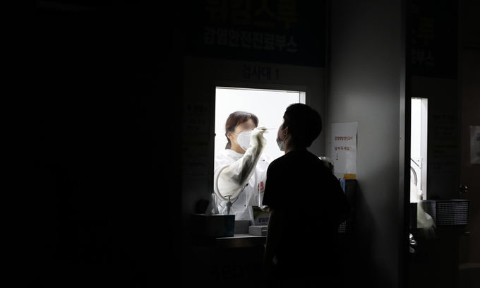 선별진료소에서 의료진이 시민의 검체를 채취하고 있다. 연합뉴스 |