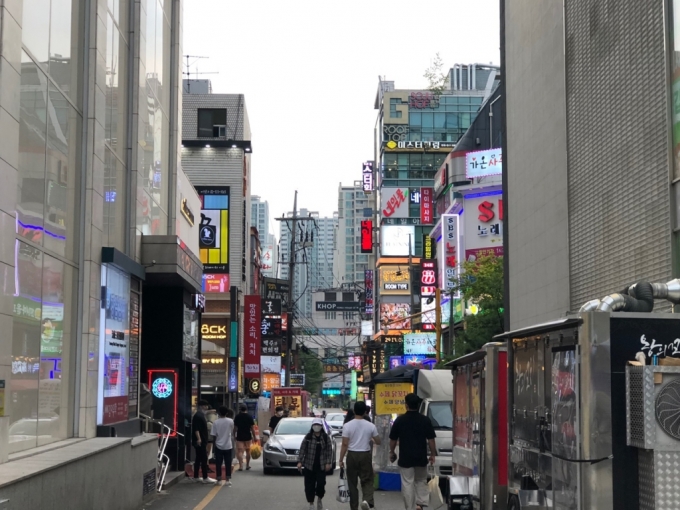 서울 지하철 2호선·신분당선 강남역 인근에 밀집한 점포 전경./사진=이재윤 기자 |