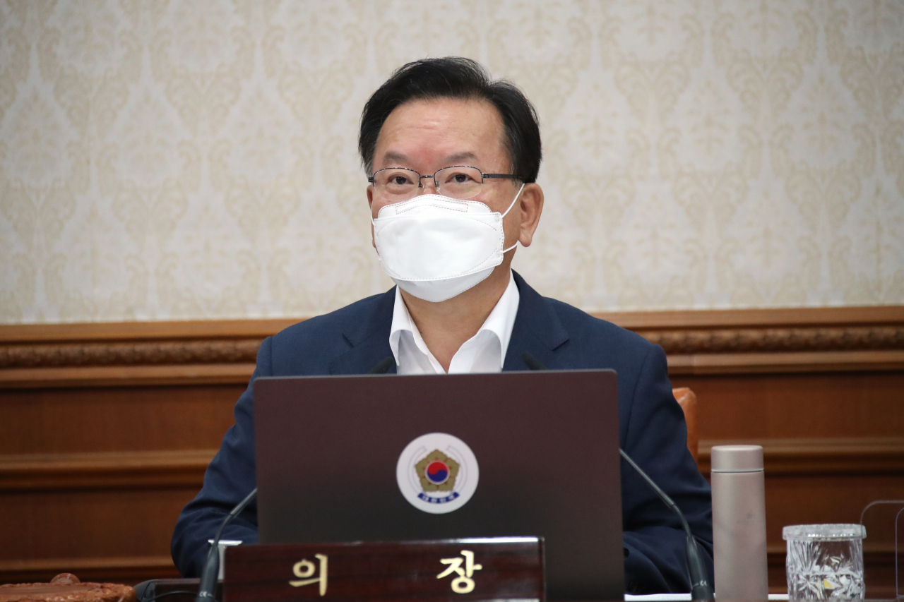 김부겸 국무총리가 13일 정부서울청사에서 열린 국무회의를 주재하고 있다. [연합] |