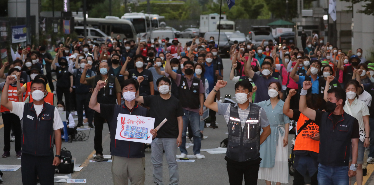 민주노총은 “신종 코로나바이러스 감염증(코로나19)으로 증폭된 불평등과 양극화의 해결을 위해 가장 필요한 것 중 하나는 바로 소득 격차의 해소였다”며 “이번 결정은 소득 격차 해소를 포기한 결정”이라고 꼬집었다.
