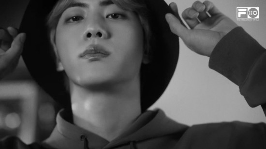 흑백으로 만들어진 영상 속에서 진은 'BTS가 전해주는 FILA 110년의 이야기'라는 글과 함께 휠라 110주년을 기념해 축하 메세지를 전했다.