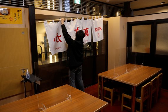 도쿄에 올들어 첫 긴급사태 선언이 발령된 지난 3월 저녁 시간대 한 식당 모습. 로이터 뉴스1 |