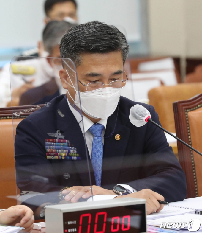 (서울=뉴스1) 이동해 기자 = 서욱 국방부 장관이 26일 국회에서 열린 국방위 전체회의에 출석해 의원들의 질의를 듣고 있다. 2021.7.26/뉴스1 |
