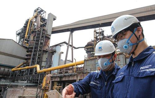 현대제철은 고로에서 배출되는 대기오염물질을 사실상 원천 차단하는 기술을 세계 최초로 개발해 실제 공정에 적용하고 있다. 사진 속 노란 파이프가 대기오염물질을 줄이는 '1차 안전밸브'. [현대제철 제공. 재판매 및 DB 금지] |