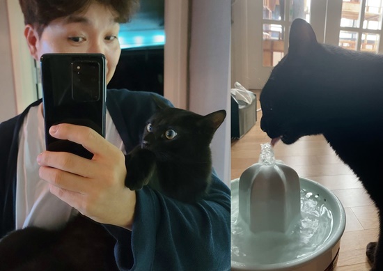 영상 속에는 박수홍 반려묘 다홍이가 물을 마시고 있는 모습. 이른 아침 일어나 물 마시는 모습도 사랑스럽게 바라보는 박수홍의 아빠 마음이 엿보인다.