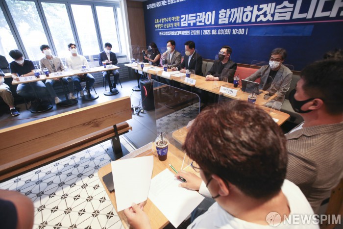 [서울=뉴스핌] 국회사진취재단 = 송영길 더불어민주당 대표가 3일 서울 마포구 한 커피전문점에서 열린 전국 자영업자 비상대책위원회 간담회에서 발언을 하고 있다. 2021.08.03 photo@newspim.com