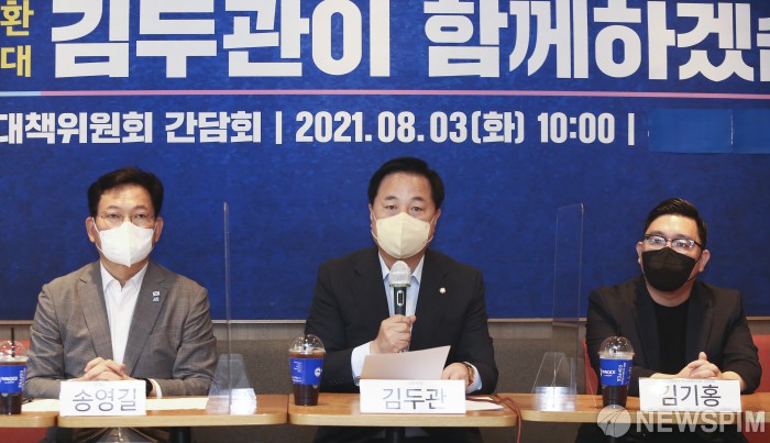 [서울=뉴스핌] 국회사진취재단 = 대선 경선 후보인 김두관 더불어민주당 의원이 3일 서울 마포구 한 커피전문점에서 열린 전국 자영업자 비상대책위원회 간담회에서 발언을 하고 있다. 2021.08.03 photo@newspim.com