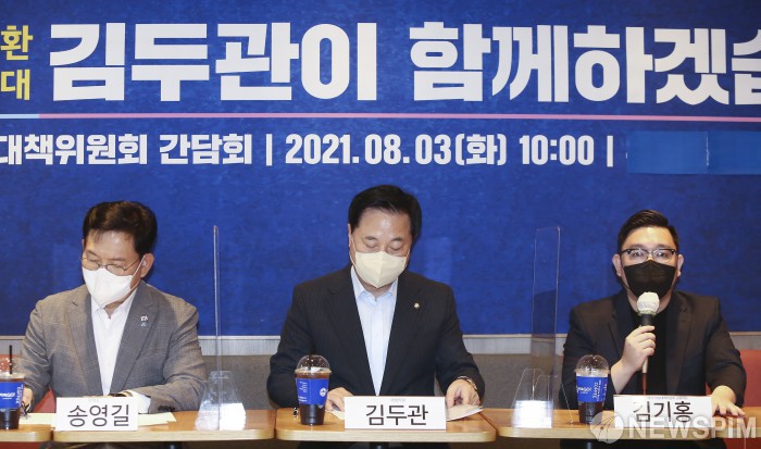 [서울=뉴스핌] 국회사진취재단 = 김기홍 전국자영업자 비상대책위원회 공동대표가 3일 서울 마포구 한 커피전문점에서 열린 전국 자영업자 비상대책위원회 간담회에서 발언을 하고 있다. 2021.08.03 photo@newspim.com