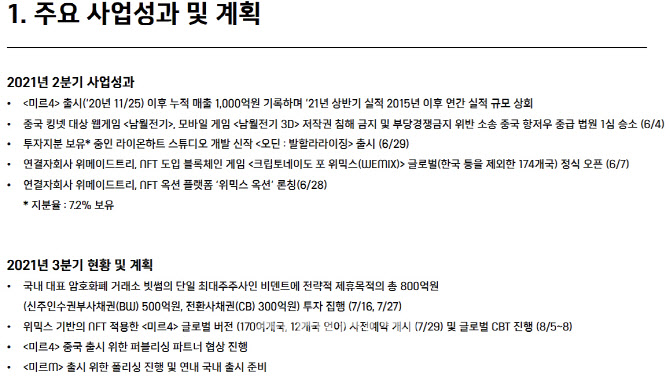 위메이드 2021년 2분기 실적 자료 갈무리 |