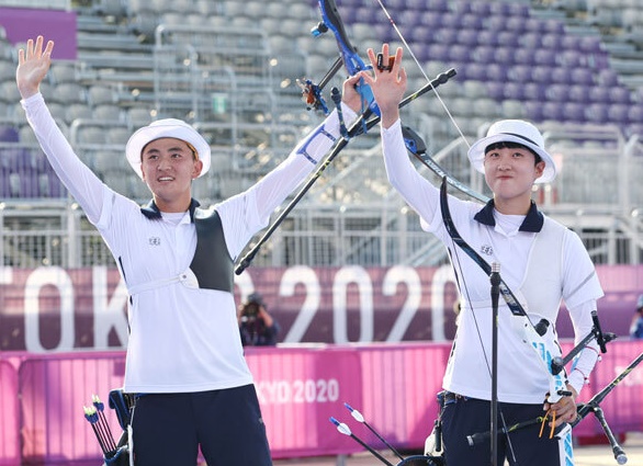 2020 도쿄올림픽 양궁 국가대표 김제덕(왼쪽)-안산(오른쪽). 사진|연합뉴스 |