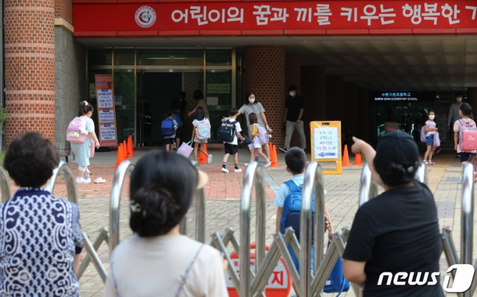 여름방학이 끝나고 전국 초·중·고등학교가 본격적인 2학기 개학을 시작한 17일 오전 경기도 수원시 권선구 가온초등학교에서 학생들이 등교를 하고 있다 /사진=뉴스1 |