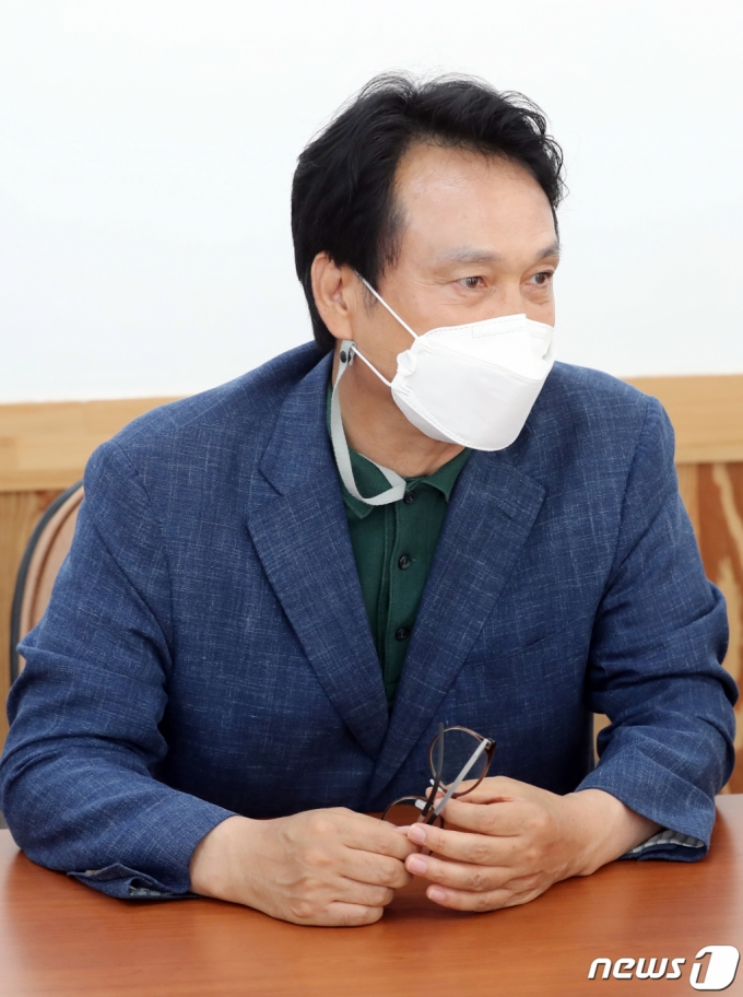 (제주=뉴스1) 오현지 기자 = 제주 민생탐방에 나선 안민석 더불어민주당 의원이 2일 오전 더불어민주당 제주도당에서 진행된 간담회에서 발언하고 있다. 2021.8.2/뉴스1 |
