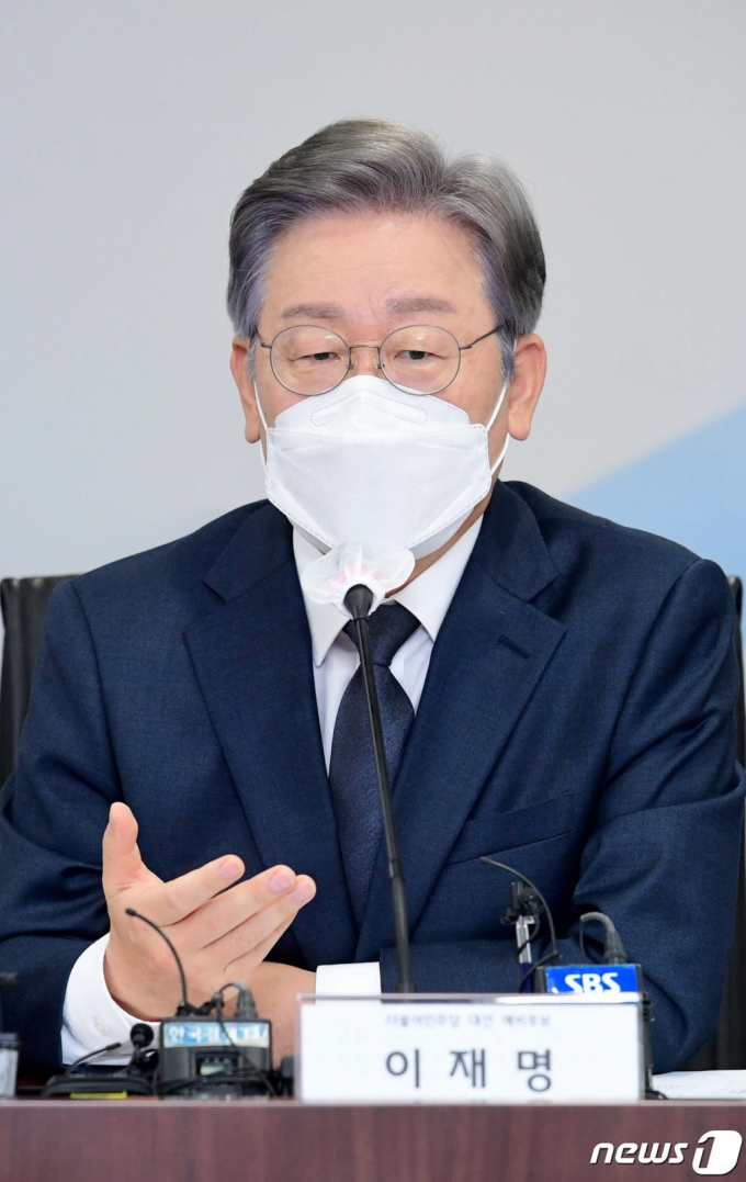 (서울=뉴스1) 구윤성 기자 = 더불어민주당 대선 예비후보인 이재명 경기도지사가 19일 서울 여의도 중소기업중앙회에서 대·중소기업 양극화 실태와 중소기업 현안과제'를 주제로 열린 중소기업인 간담회에서 인사말을 하고 있다. 2021.8.19/뉴스1 |